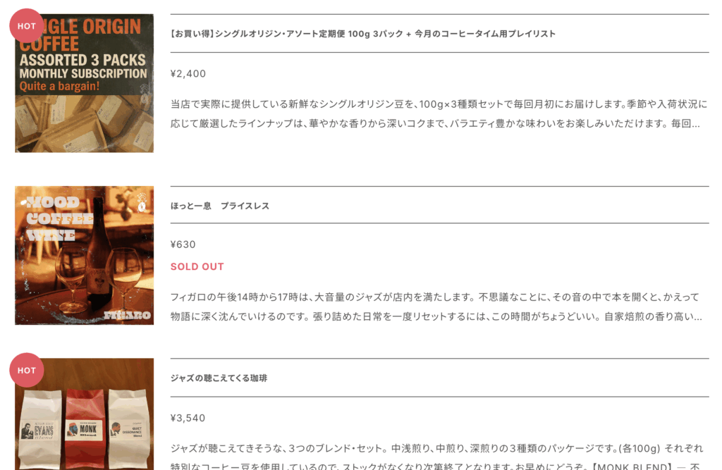 以下のリンクサイトではFIGARO(耕雲堂珈琲焙煎室)にて焙煎したてのスペシャリティコーヒー豆の販売を行っています。
